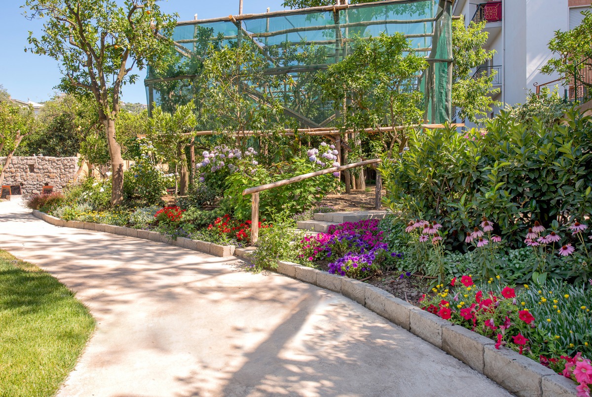 Sedie e tavolini di canapa intrecciata, lanterne e candele eleganti, posizionate in vari punti del giardino, concedono la possibilità di passare momenti di relax immersi in un ambiente che valorizza le bellezze naturali di questa terra.